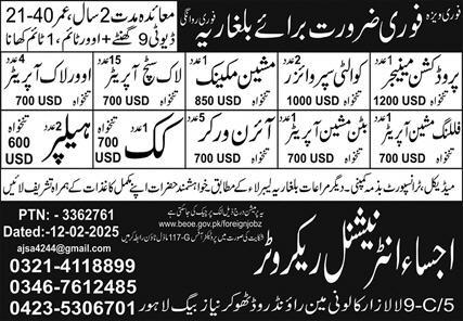 Ajsa International Recruiters latest Overseas Industrial jobs and others can be applied till 28 February 2025 or as per closing date in newspaper ad. Read complete ad online to know how to apply on latest Ajsa International Recruiters job opportunities. Salary varies from 330000.