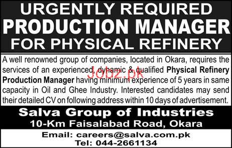 Vacancies in Salva Group of Industries Advertisement November 2018