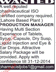 Production Manager Job Opportunity