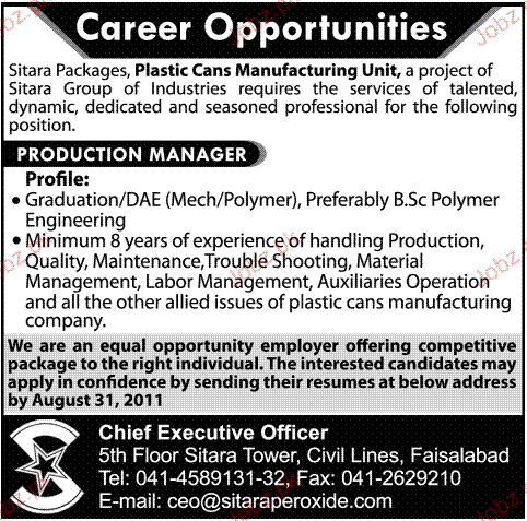 Apply as per details in job advertisement. Login to view further details of how to apply via https://www.jobz.pk online.