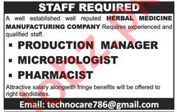 Production Manager, Microbiologist & Pharmacist Jobs 2019