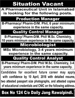 Latest National Pharmaceutical Unit Management Posts Rawalpindi 2025