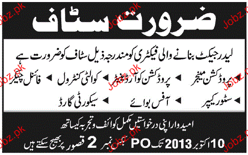 Apply as per details in job advertisement. Login to view further details of how to apply via https://www.jobz.pk online.