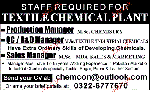Production Manager, Sales Manager Job Opportunity