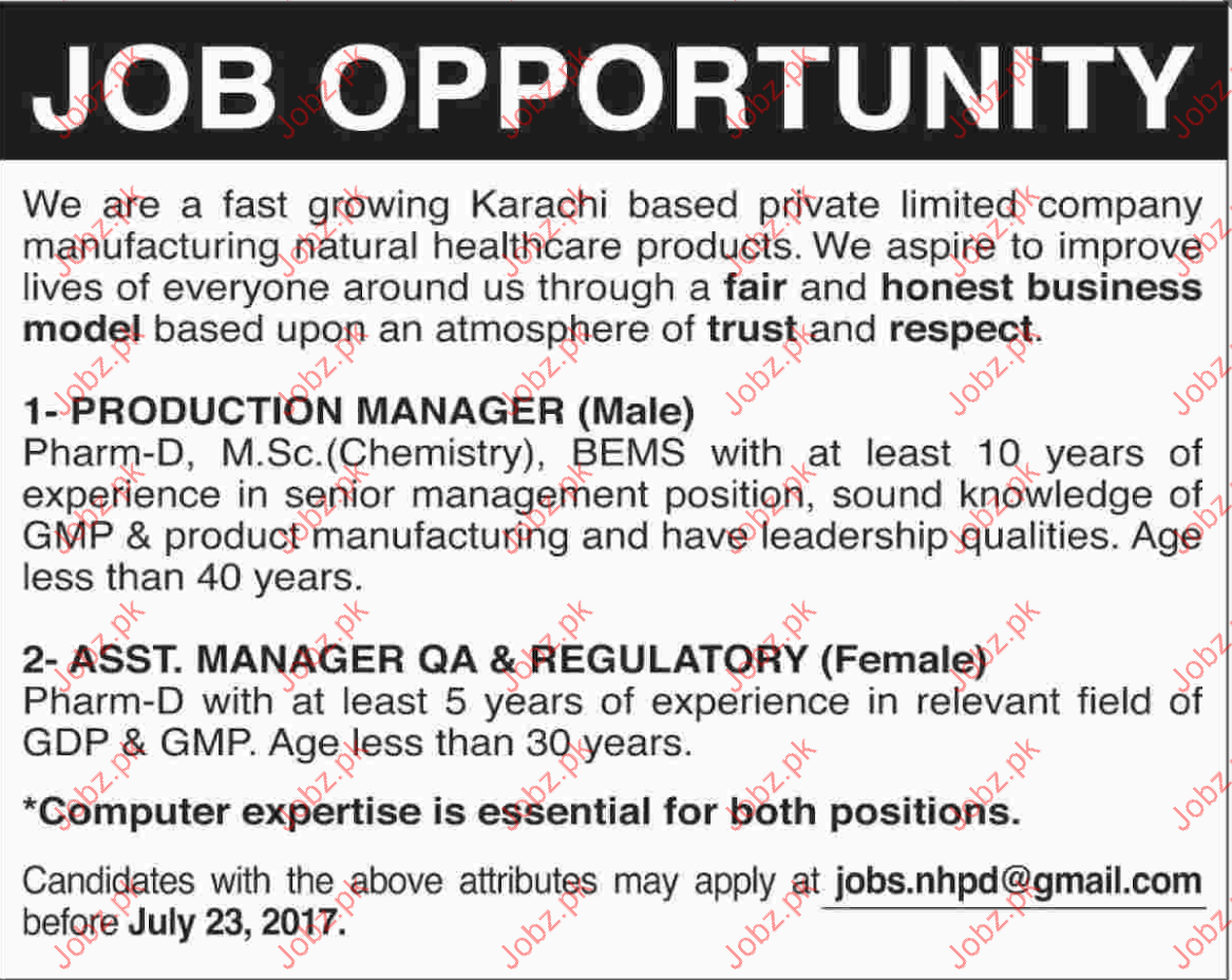 Apply as per details in job advertisement. Login to view further details of how to apply via https://www.jobz.pk online.