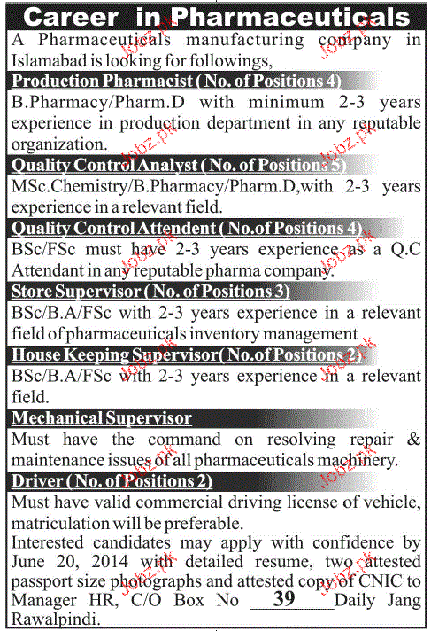 Apply as per details in job advertisement. Login to view further details of how to apply via https://www.jobz.pk online.