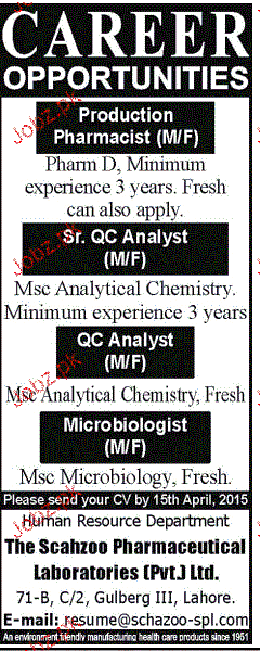 Production Pharmacists, Senior QC Analysts Job Opportunity