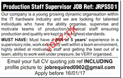 Apply as per details in job advertisement. Login to view further details of how to apply via https://www.jobz.pk online.