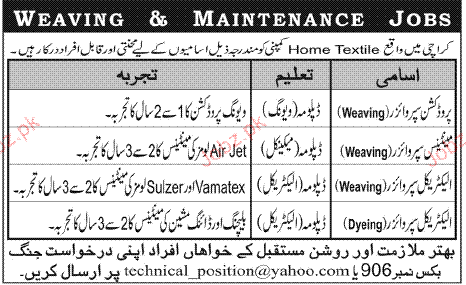 Apply as per details in job advertisement. Login to view further details of how to apply via https://www.jobz.pk online.