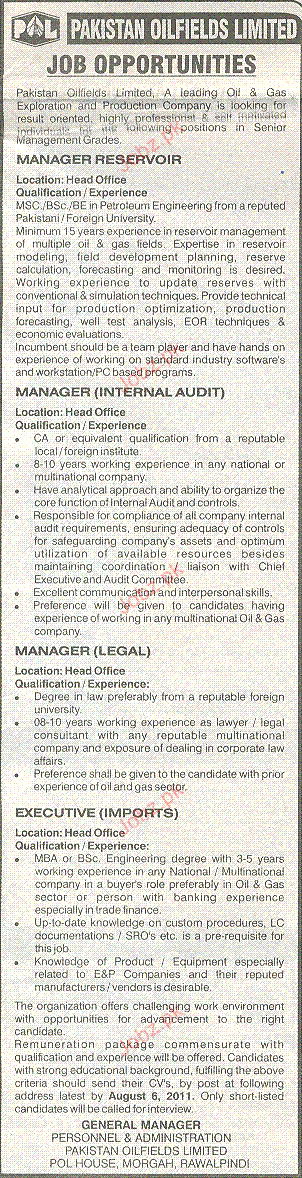 Apply as per details in job advertisement. Login to view further details of how to apply via https://www.jobz.pk online.