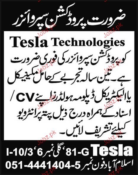 Production Supervisors Job Opportunity