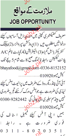 Apply as per details in job advertisement. Login to view further details of how to apply via https://www.jobz.pk online.
