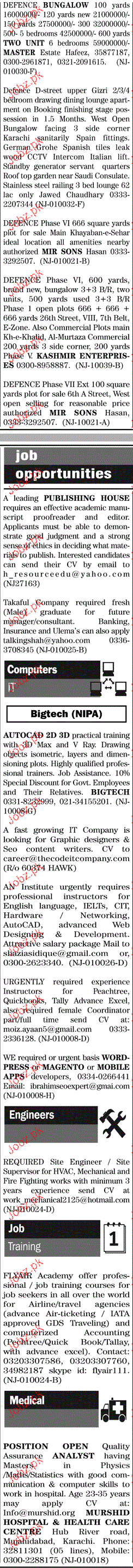 Apply as per details in job advertisement. Login to view further details of how to apply via https://www.jobz.pk online.
