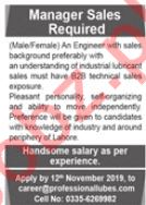 Professional Lubes Lahore Jobs 2019 for Manager Sales