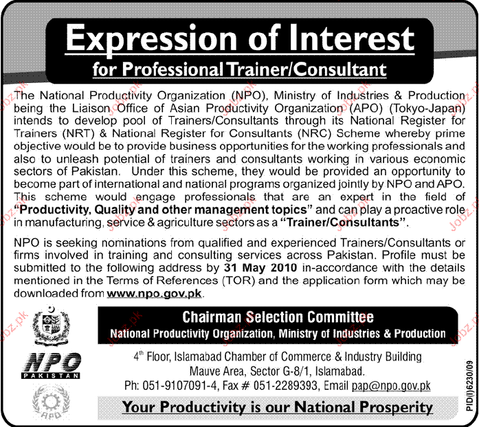Apply as per details in job advertisement. Login to view further details of how to apply via https://www.jobz.pk online.