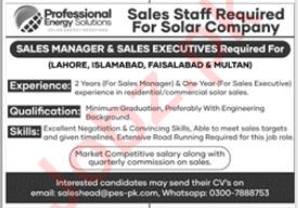 Latest Professional Energy Solutions Sales Posts Islamabad 2025