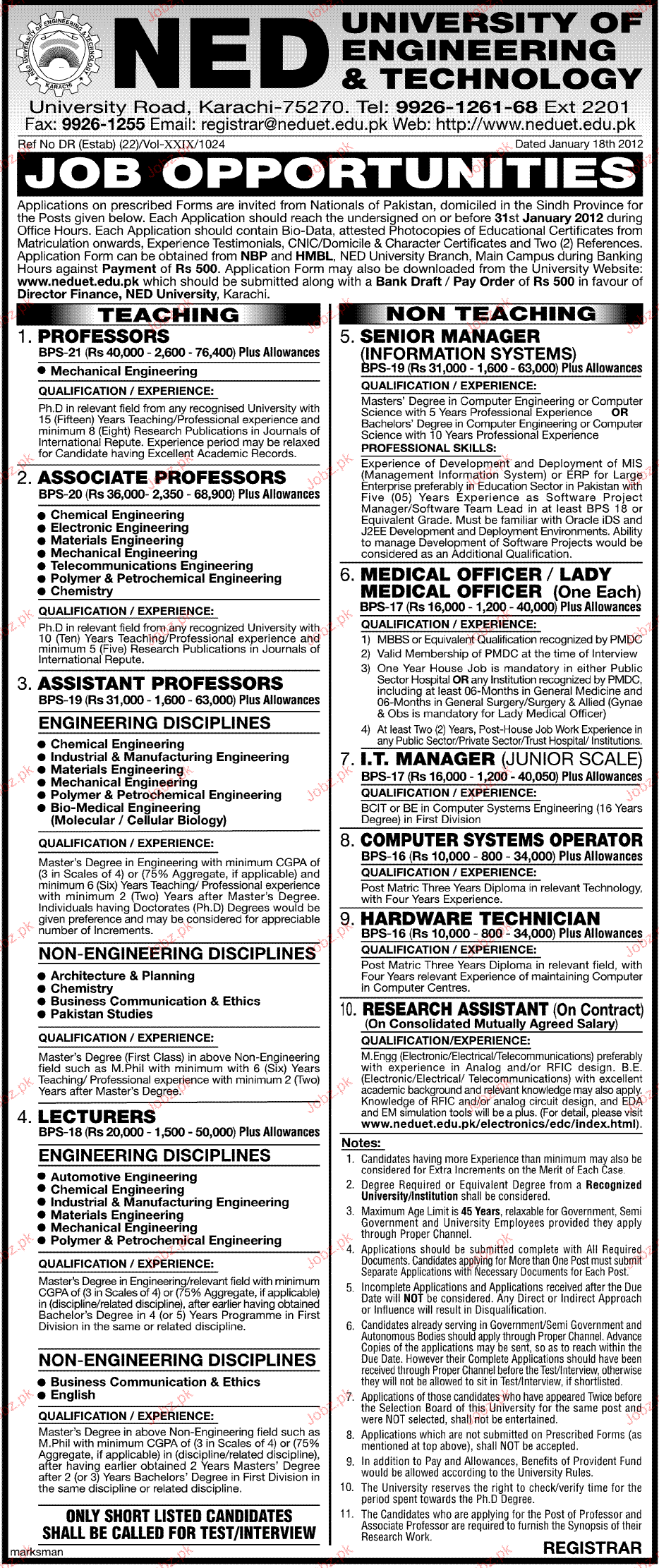 Apply as per details in job advertisement. Login to view further details of how to apply via https://www.jobz.pk online.
