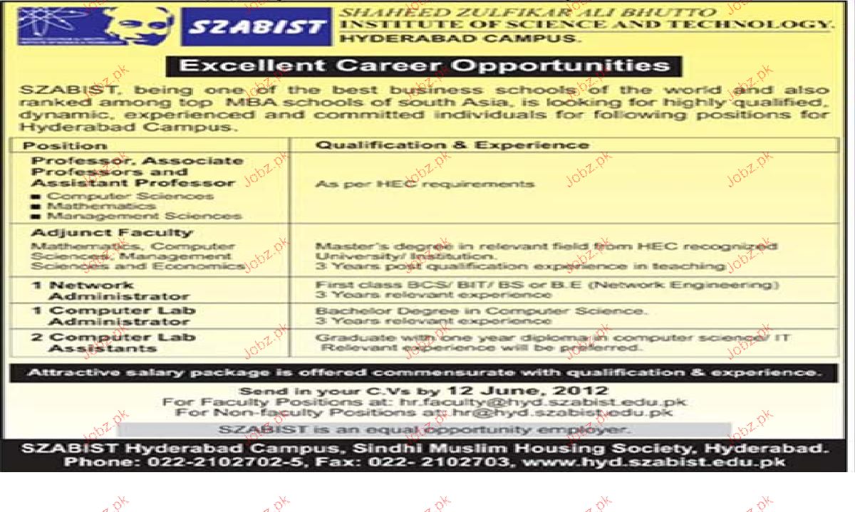 Apply as per details in job advertisement. Login to view further details of how to apply via https://www.jobz.pk online.