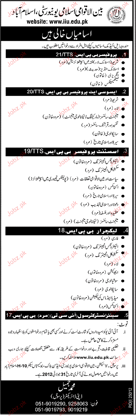 Professor, Associate Professor, Assistant Professor, Lecturers and Senior Instructors are required in International Islamic University in Islamabad