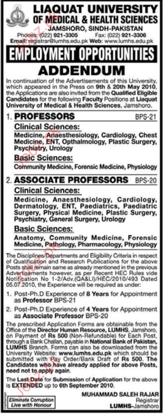 Apply as per details in job advertisement. Login to view further details of how to apply via https://www.jobz.pk online.