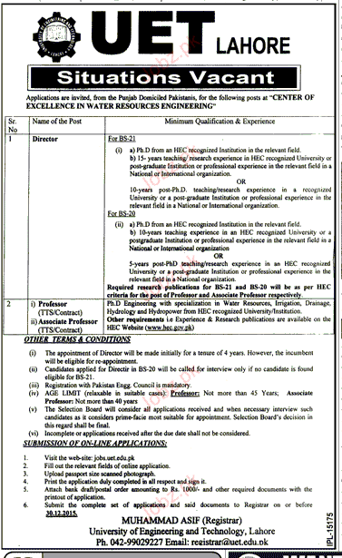 Apply as per details in job advertisement. Login to view further details of how to apply via https://www.jobz.pk online.