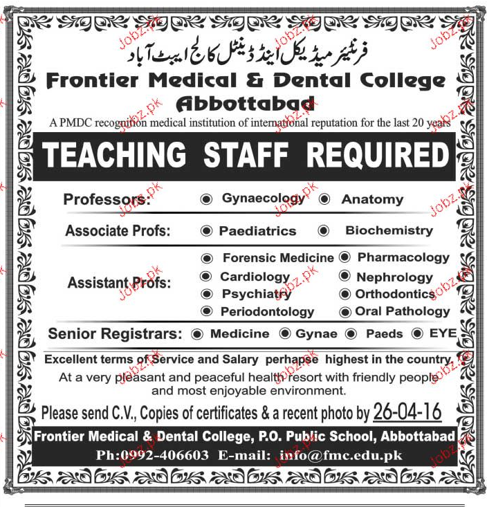 Apply as per details in job advertisement. Login to view further details of how to apply via https://www.jobz.pk online.