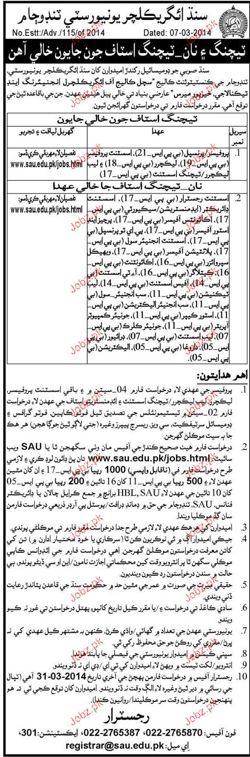Professors, Assistant Registrar Job In Sindh Agriculture Uni