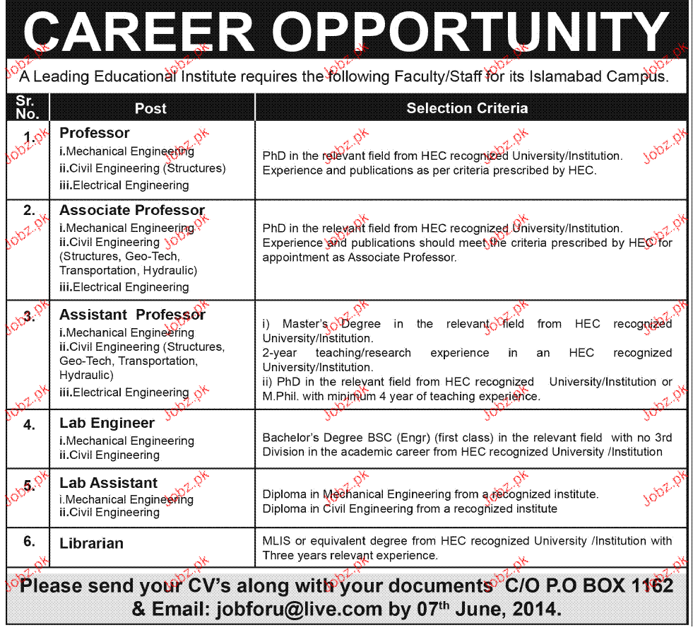 Apply as per details in job advertisement. Login to view further details of how to apply via https://www.jobz.pk online.