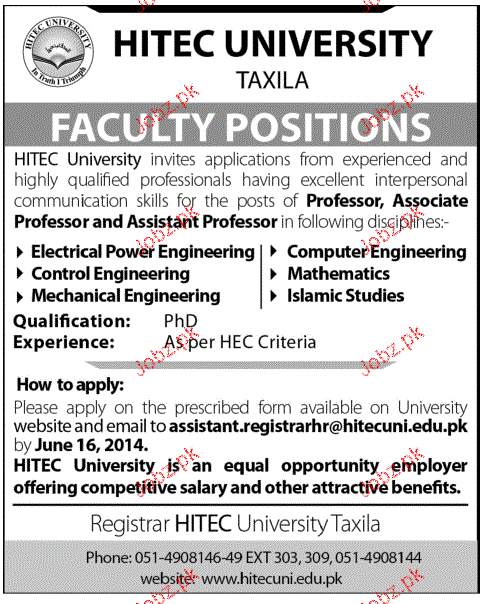 Apply as per details in job advertisement. Login to view further details of how to apply via https://www.jobz.pk online.