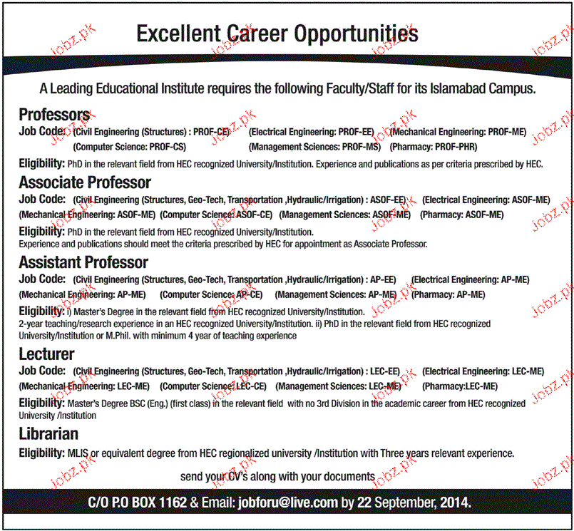 Latest Private Company Teaching Posts Islamabad 2025