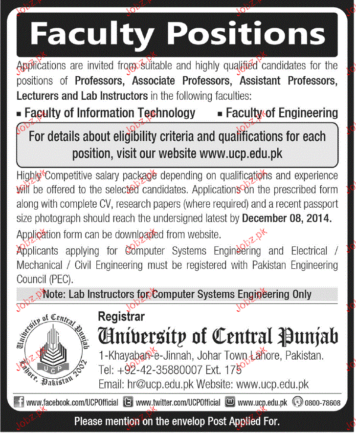 Apply as per details in job advertisement. Login to view further details of how to apply via https://www.jobz.pk online.