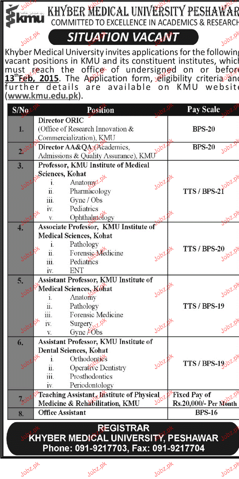 Professors, Associate Professors, Assistant Professor, Director ORIC and Director AA are required in Peshawar.