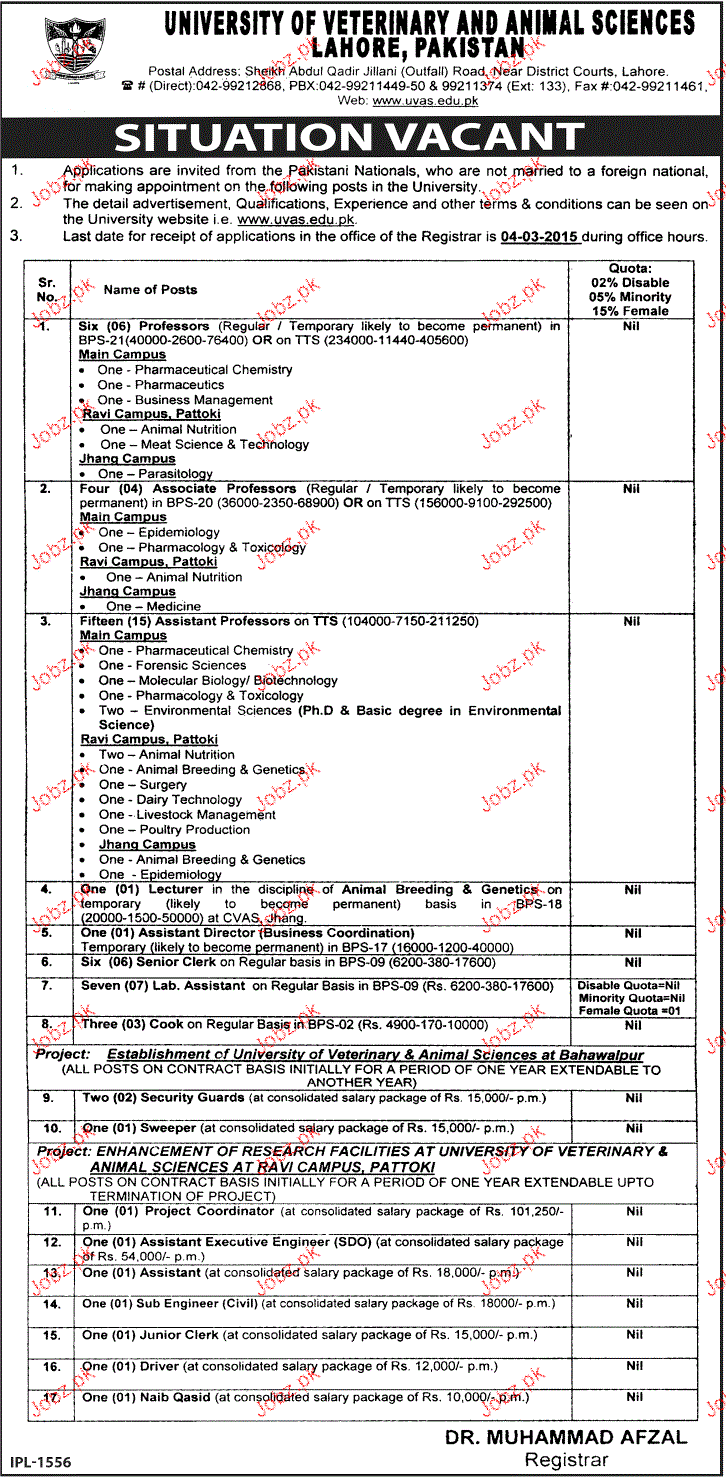 Apply as per details in job advertisement. Login to view further details of how to apply via https://www.jobz.pk online.