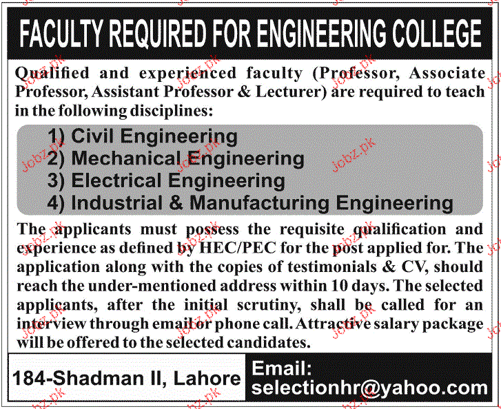 Apply as per details in job advertisement. Login to view further details of how to apply via https://www.jobz.pk online.