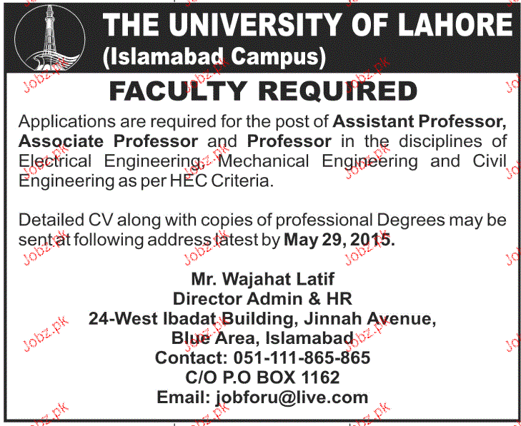 Apply as per details in job advertisement. Login to view further details of how to apply via https://www.jobz.pk online.