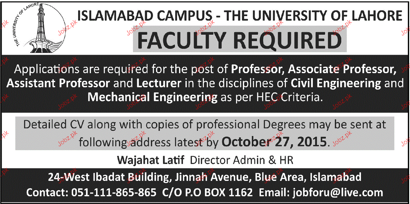 Apply as per details in job advertisement. Login to view further details of how to apply via https://www.jobz.pk online.