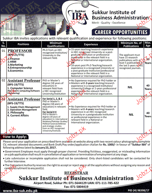 Apply as per details in job advertisement. Login to view further details of how to apply via https://www.jobz.pk online.