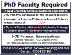 Apply as per details in job advertisement. Login to view further details of how to apply via https://www.jobz.pk online.