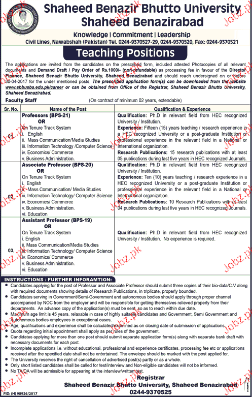 Apply as per details in job advertisement. Login to view further details of how to apply via https://www.jobz.pk online.