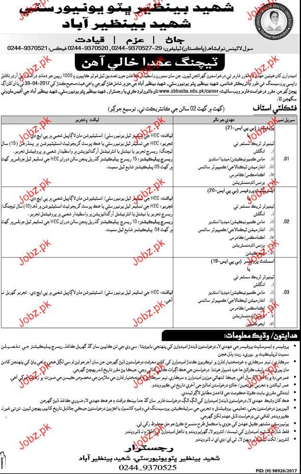 Latest Government Teaching Posts Nawabshah 2025