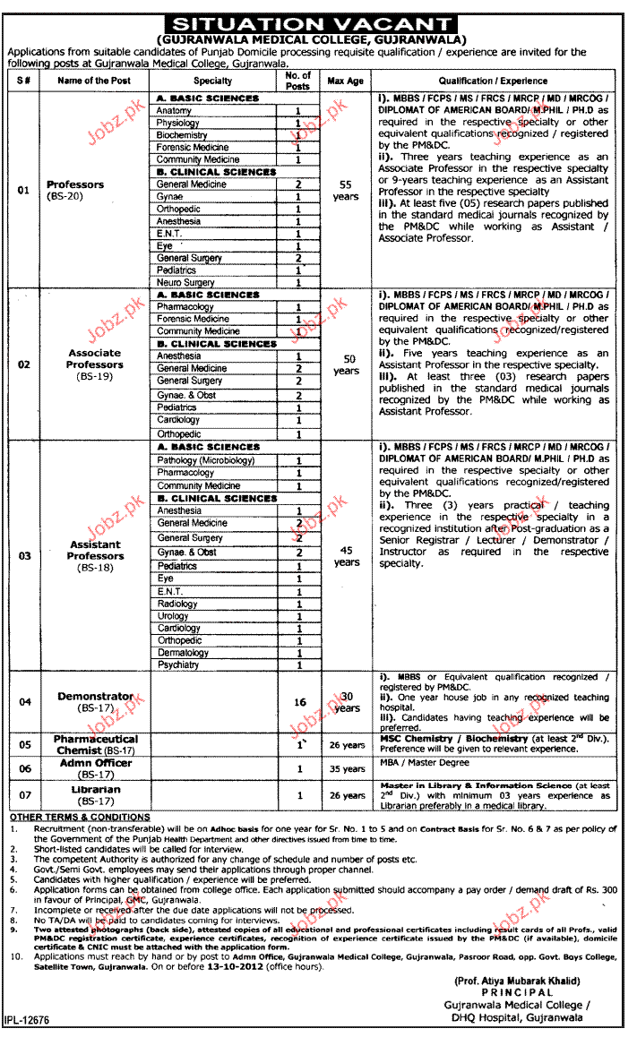 Latest Health Organization Teaching Posts Gujranwala 2025