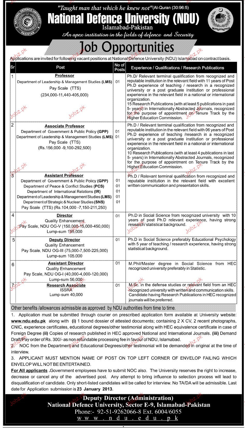 Apply as per details in job advertisement. Login to view further details of how to apply via https://www.jobz.pk online.