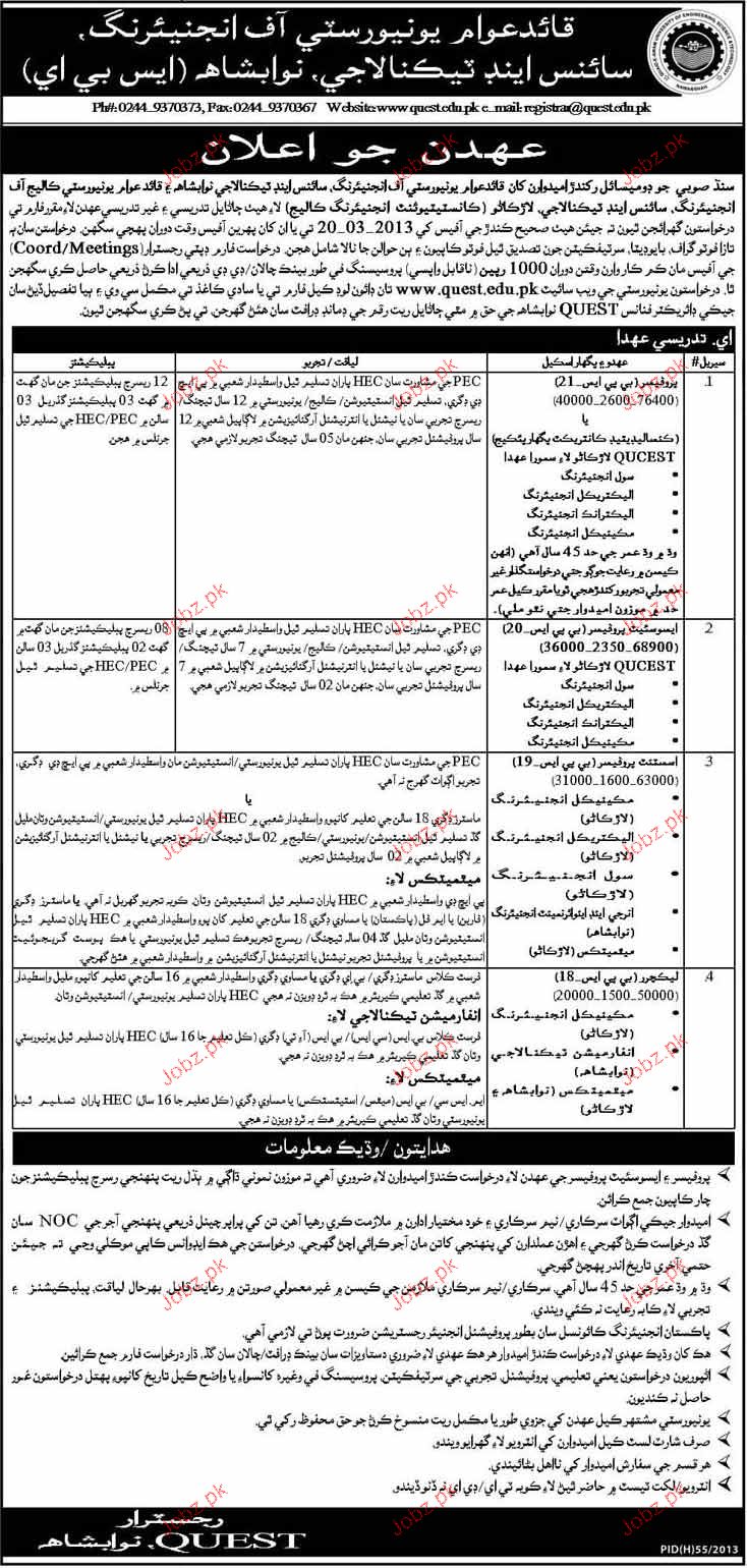 Latest Quaid e Awam University of Engineering Science and Technology Teaching Posts Nawabshah 2025