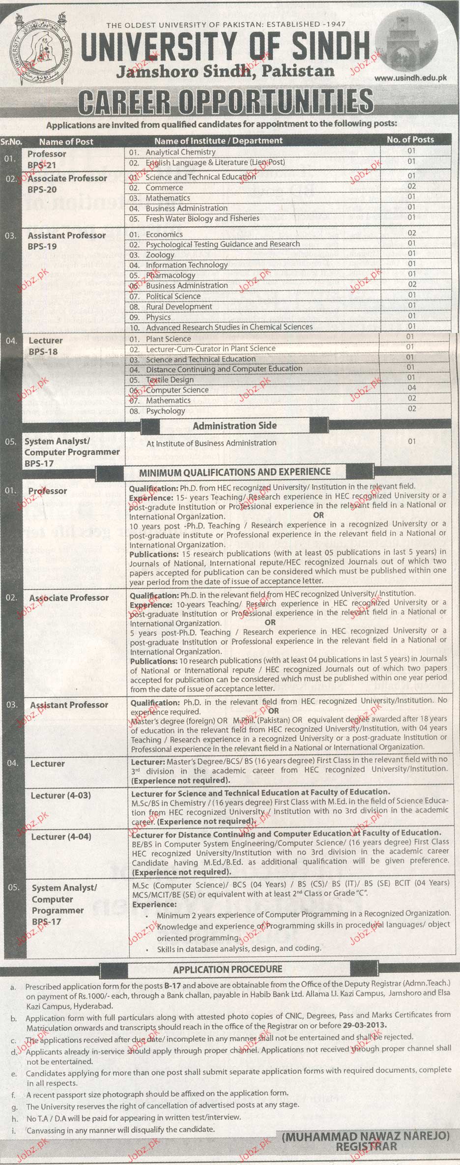 Apply as per details in job advertisement. Login to view further details of how to apply via https://www.jobz.pk online.