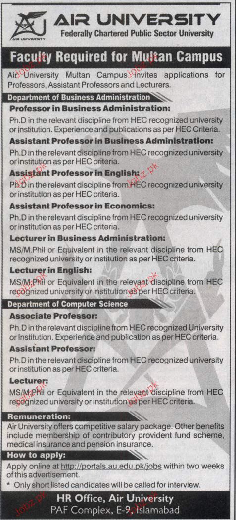 Apply as per details in job advertisement. Login to view further details of how to apply via https://www.jobz.pk online.