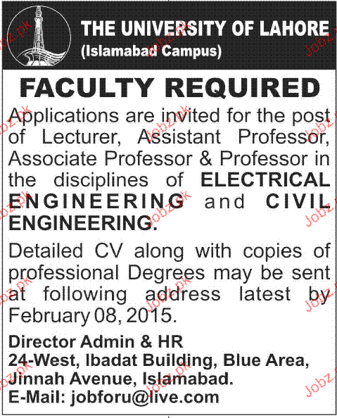 Apply as per details in job advertisement. Login to view further details of how to apply via https://www.jobz.pk online.