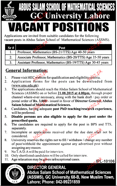 Apply as per details in job advertisement. Login to view further details of how to apply via https://www.jobz.pk online.