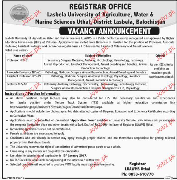 Apply as per details in job advertisement. Login to view further details of how to apply via https://www.jobz.pk online.