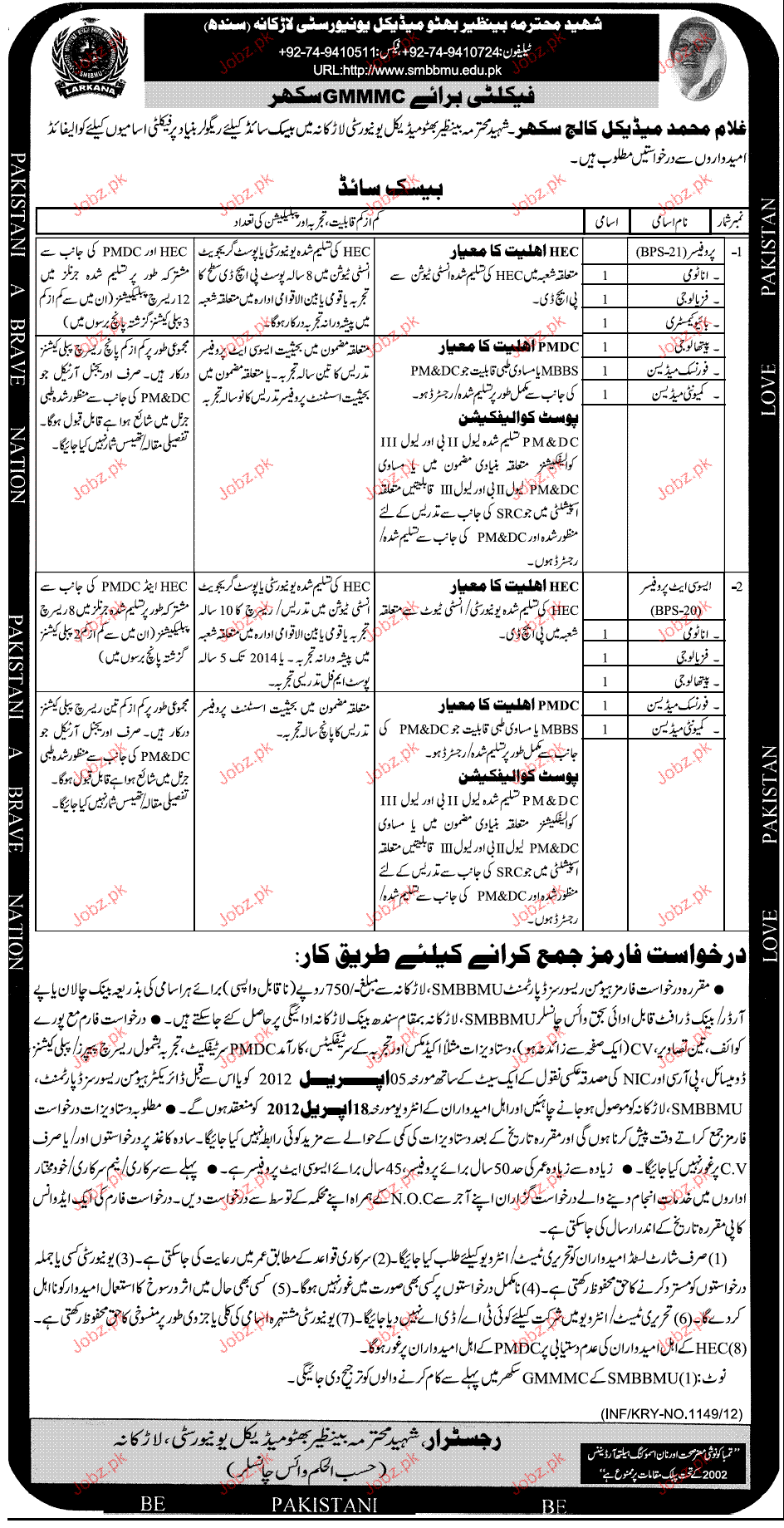 Apply as per details in job advertisement. Login to view further details of how to apply via https://www.jobz.pk online.