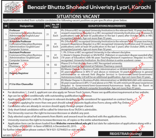 Apply as per details in job advertisement. Login to view further details of how to apply via https://www.jobz.pk online.